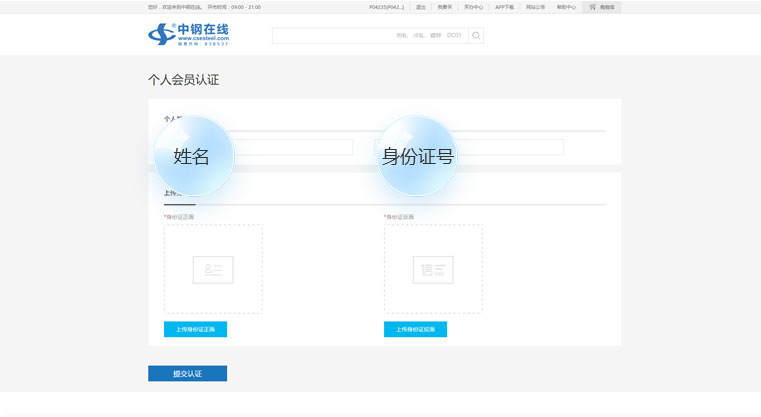 “姓名”“身份证号”上传“身份证正面”“身份证反面”