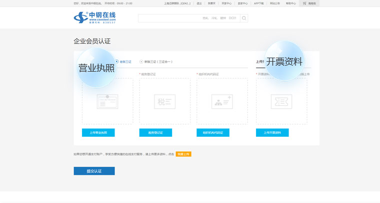 “营业执照”“税务登记证”“组织机构代码证”“开票资料”